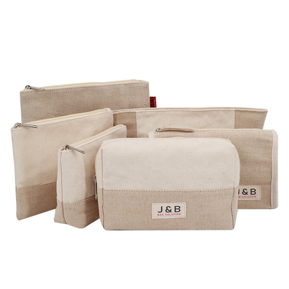 Naturel promotionnel personnalisé Jute coton mélange tissu cadeau pochette à fermeture éclair fourre-tout petit Jute sac cosmétique pochette de maquillage Eco