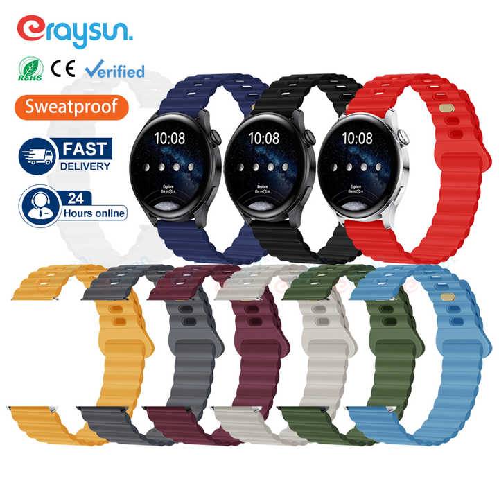 Eraysun Bracelet de montre en silicone 20mm 22mm pour Samsung Galaxy 3 4 5 46mm/42mm/actif 2 vitesses S3 Bracelet de montre de sport personnalisé