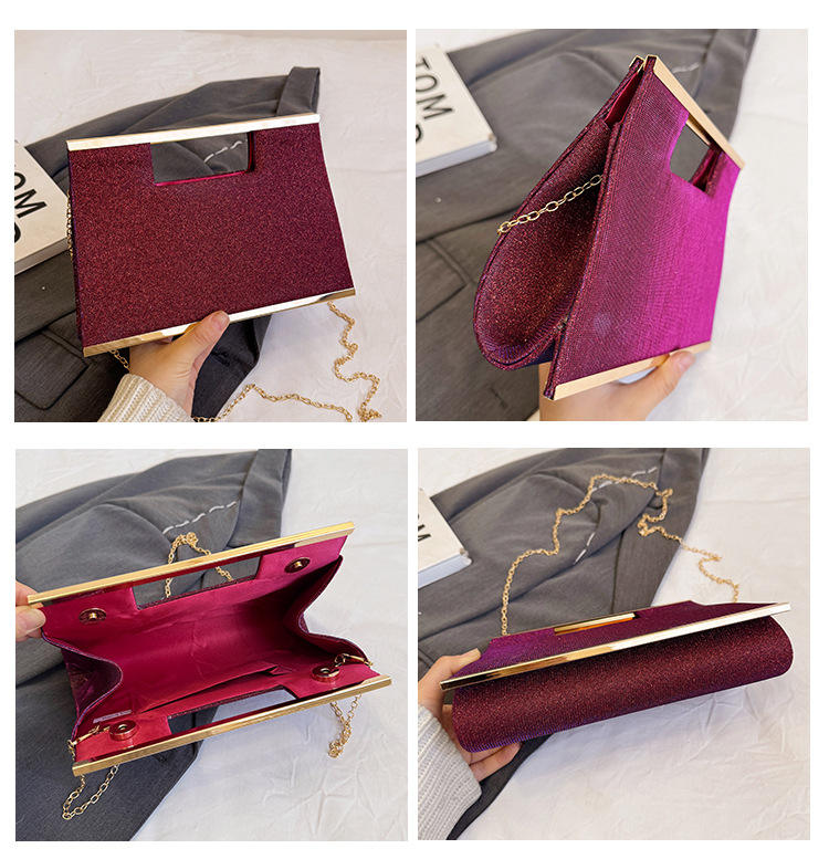 Euro mode métallisé cadre pochette en cuir pochette sac à main femmes longue chaîne sac à bandoulière brillant paillettes fête bal Date sacs à main