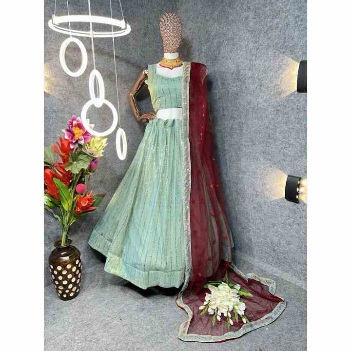 MODE ORGANZA CRUSHED MOONLIGHT MÉTALLIQUE TRICOT PLISSÉ LEHENGA CHOLI AVEC DUPATTA DEA VERT