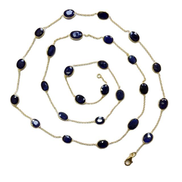 Collier à longue chaîne en saphir bleu à la mode en argent sterling 925 plaqué or à bas quantité minimale de commande fournisseur de bijoux