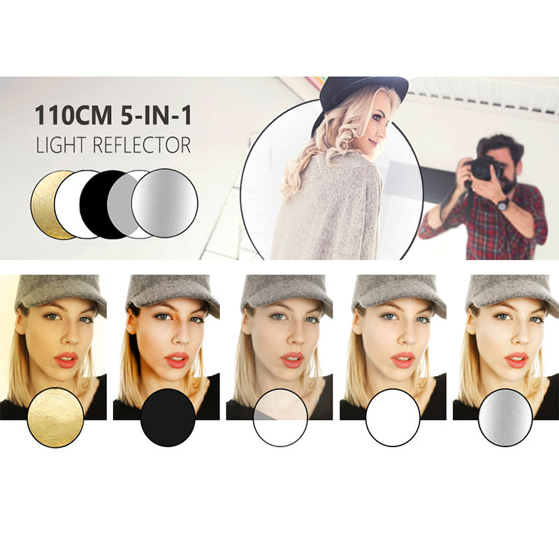 Boîte de couleur standard pour photographie Godox réflecteur d'éclairage 43 "/110cm Portable 5 en 1 réflecteur Photo de Studio multidisque rond pliable
