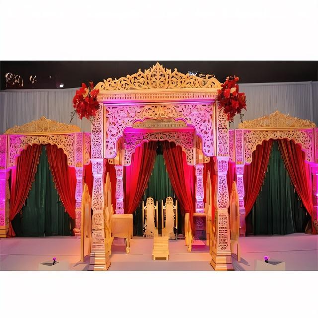 Mandap de cérémonie de mariage Golden Jodha Akbar, décoration de mariage en fibre premium, meilleur prix, mandap de mariage indien, New York