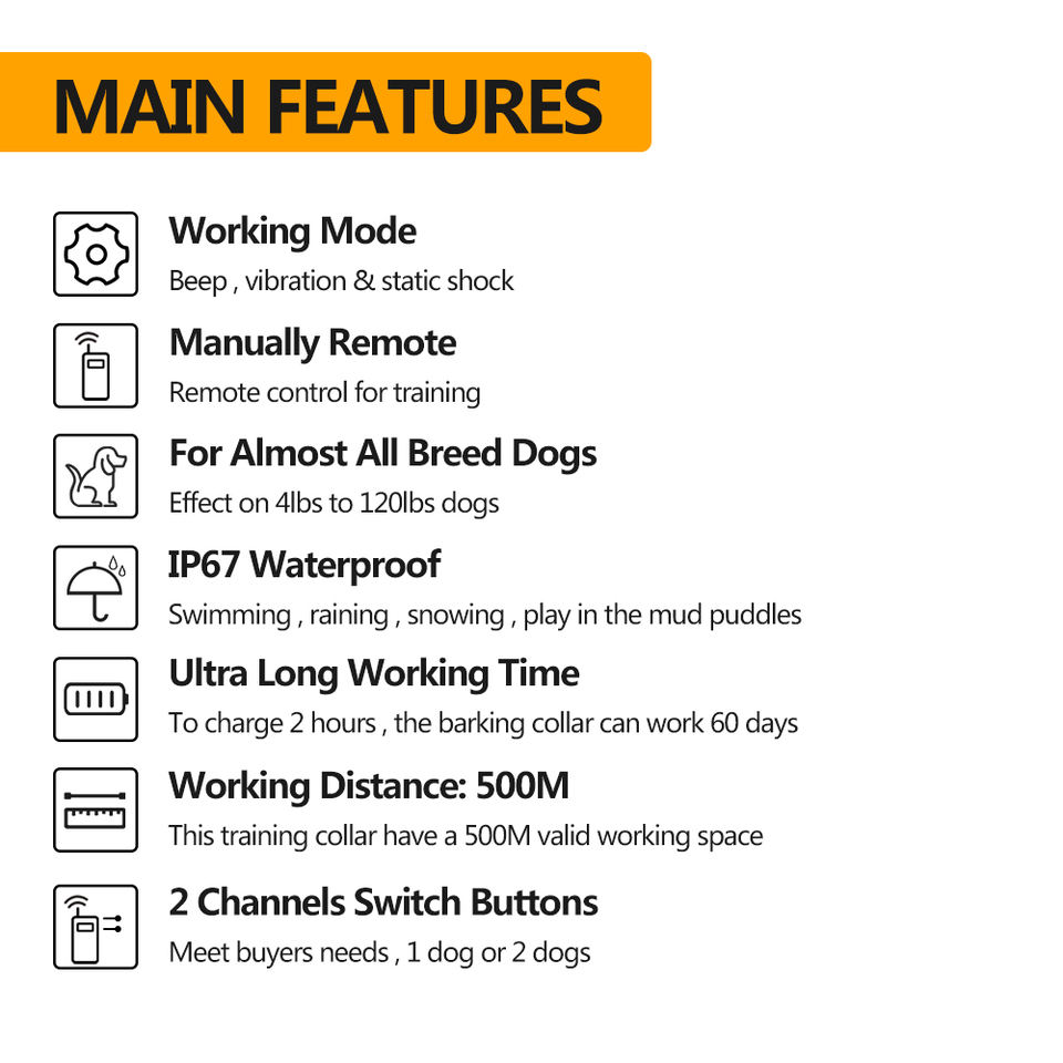 Caractéristique:Niveaux de choc réglables, Rechargeable, Télécommande, Étanche