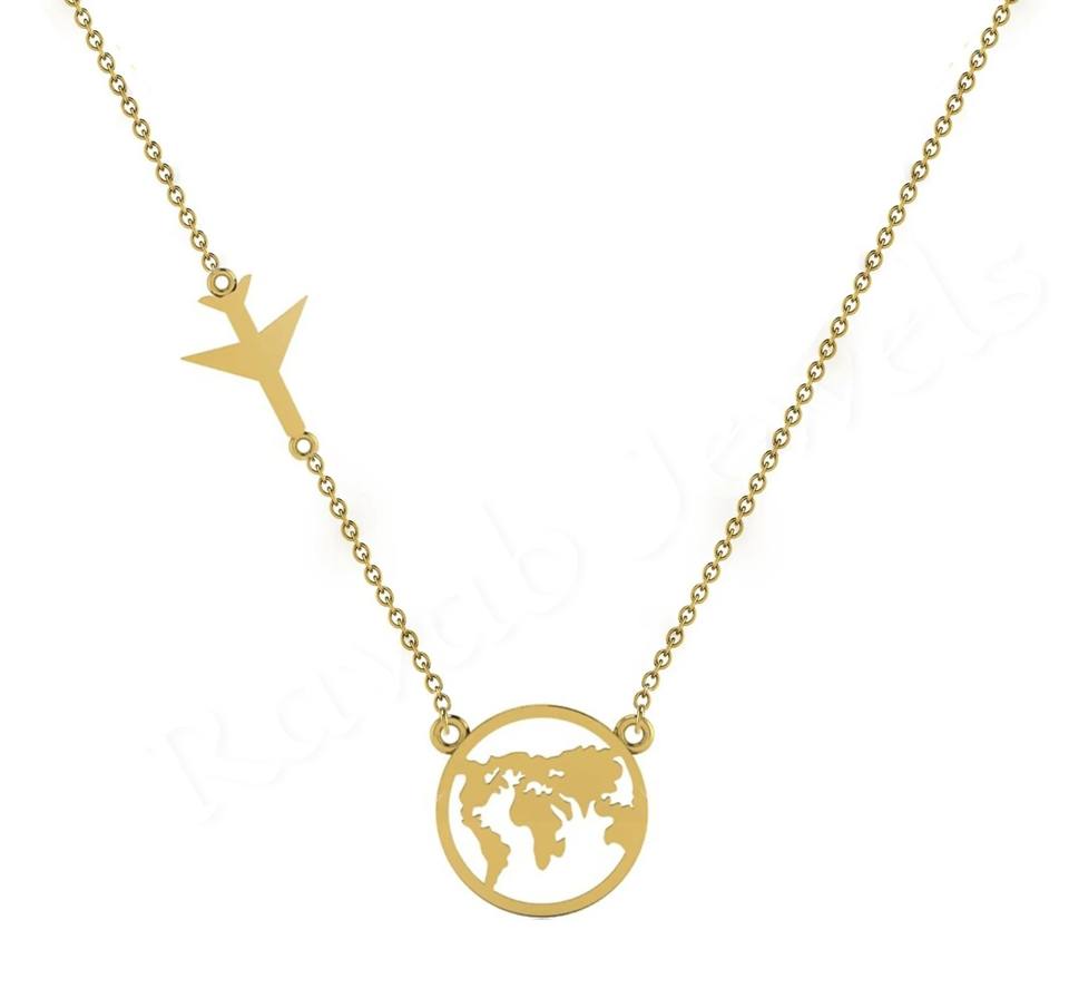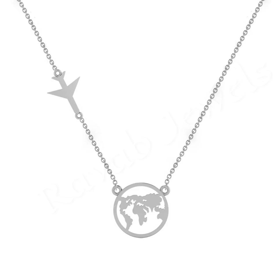 Nom du produit:Collier pendentif avion globe de terre en argent massif 925