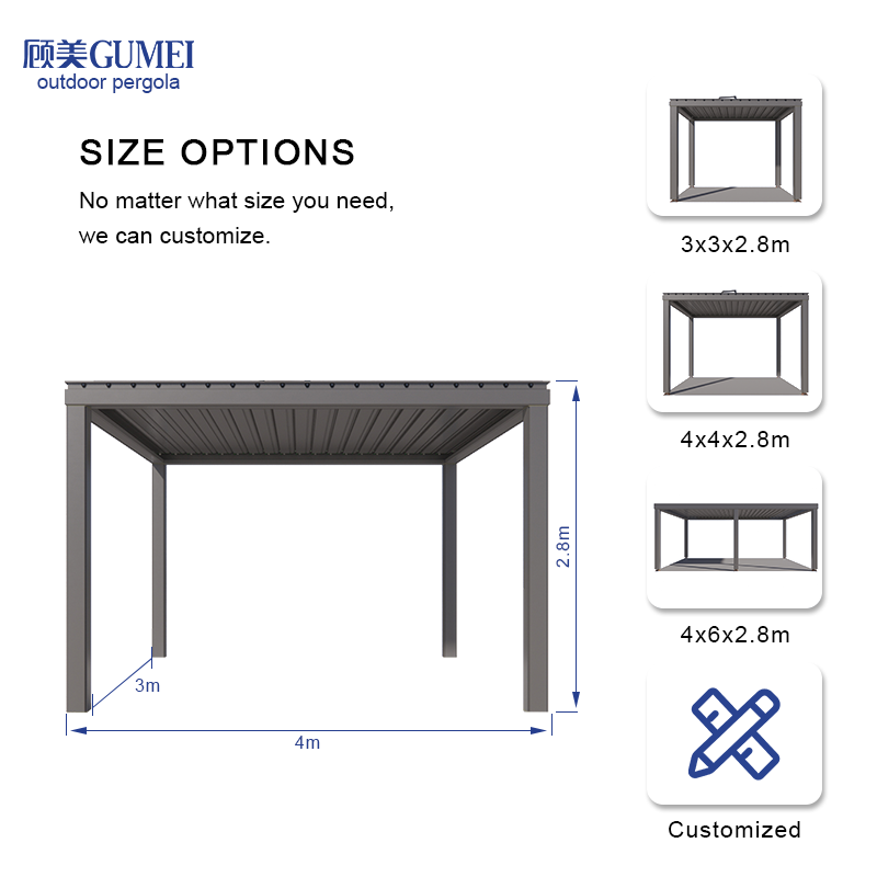 Optional accessories:Side screen/ LED Light/Wind & rain sensor/Heater,etc