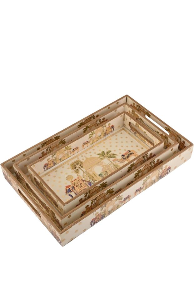 Ensemble de 3 plateaux en bois faits à la main avec motif animal, technique d'émail coloré, sans BPA, écologique, design moderne et luxueux, artisanat