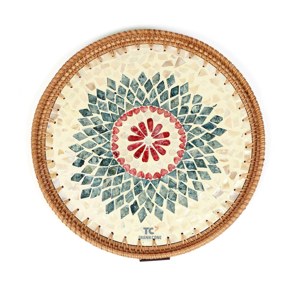 Plateaux de mosaïque de fleurs vietnamiennes fabriqués à la main Plateaux de service décoratifs haut de gamme pour le Ramadan et l'élégance de la maison