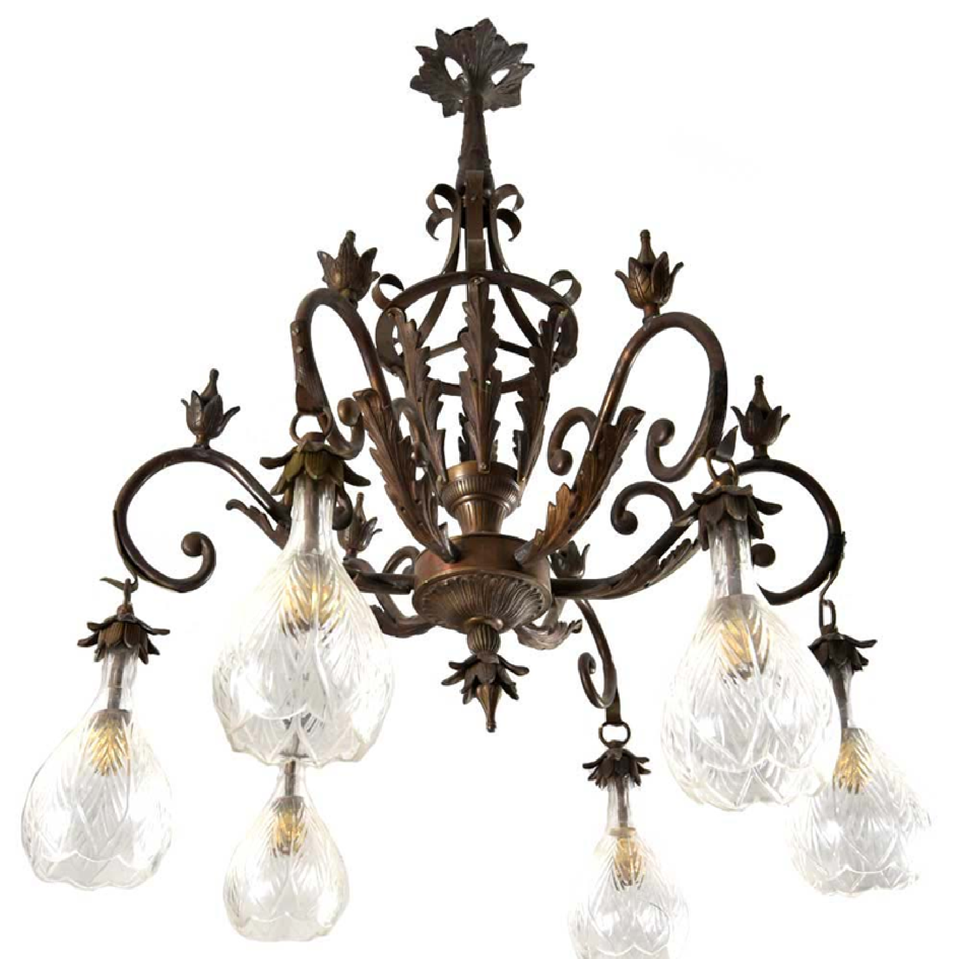 Lustre en laiton au design vintage fabriqué à la main avec 6 lampes en verre dépoli clair lustre à bougie rustique salle à manger en gros