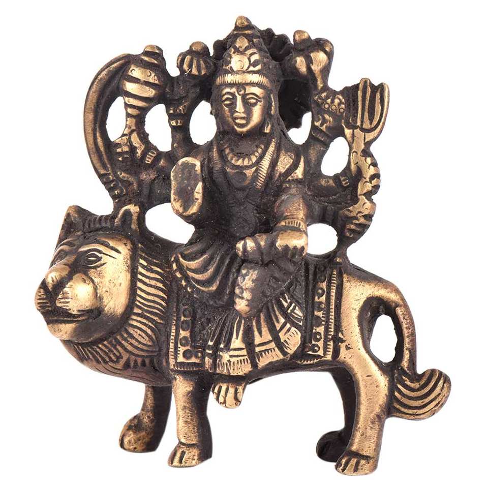 Sculptures d'Idoles de Durga et de Bhagwati en Laiton Antique Fait Main, Figurines de Lion Assis, Statues, Pièces de Décoration, Articles Cadeaux