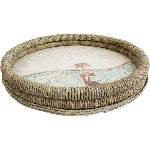 Plateau de service exquis en nacre avec jonc de mer pour la décoration
