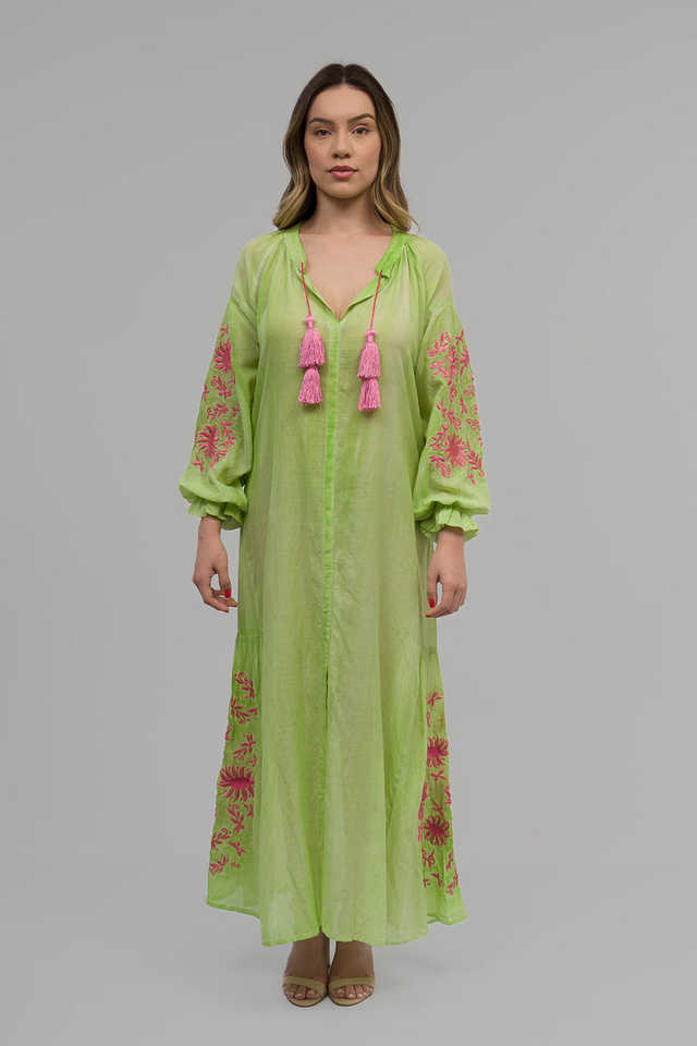 Haute couture rose brodé à manches longues col en v longueur de plancher Boho gitane élégant longue ukrainienne pour mariage