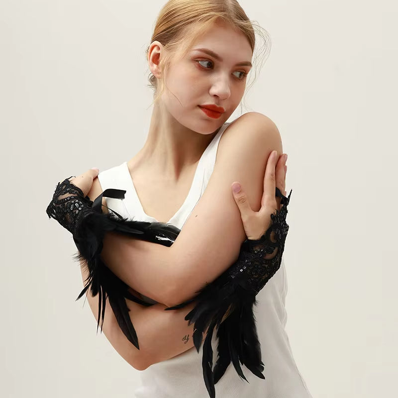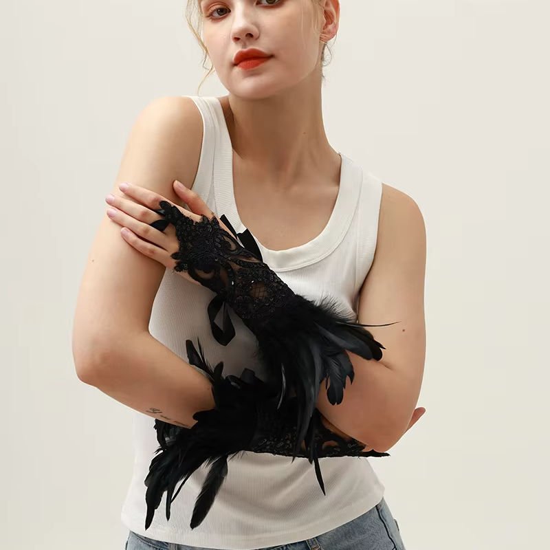 Bracelet de plumes de carnaval de haute qualité mitaines gothiques Lolita bracelet en dentelle pour Cosplay