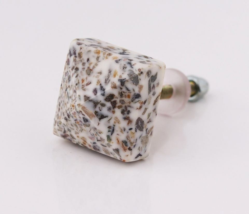 Product name:White Stone Square Shaped Terrazzo Cabinet Knob Cabinet, Drawer Knob