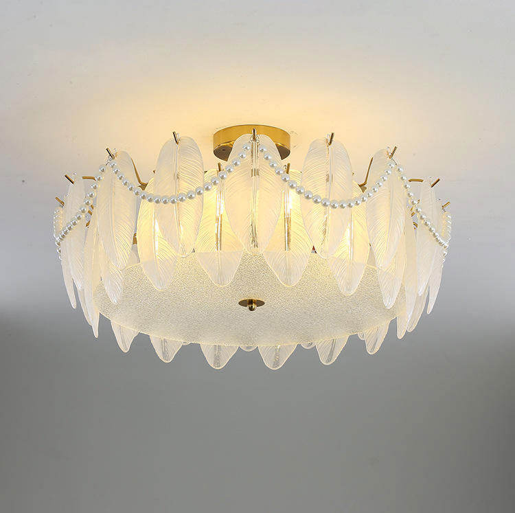 Plafonnier rond en verre plume française de haute qualité Design contemporain pour bureau à domicile salle à manger chambre éclairage décoratif IP44