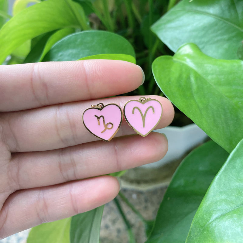 Accessoires de bijouterie de haute qualité, Horoscope en acier inoxydable et émail rose, 12 signes, breloques en forme de cœur pour la fabrication de bijoux, livraison gratuite