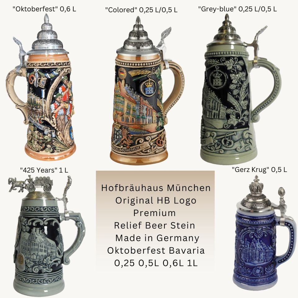Hofbraeuhaus Muenchen Oktoberfest Relief Stein Hofbraeuhaus Colored 0,25 L German Beer Stein for Festival Gift Souvenir