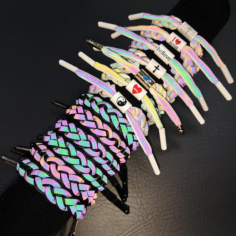 Holographique Réfléchissant Petit Lion Couples Bracelet Tissé Décoloration Tissage Lacet Bracelets Hommes Bijoux CLASSIQUE Géométrique