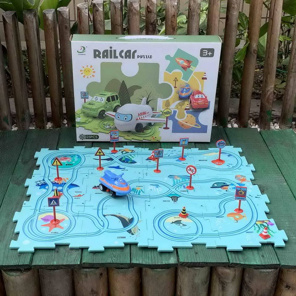 Offre Spéciale prix raisonnable enfants bricolage assembler chemin de fer voie jouet à piles Puzzle voitures