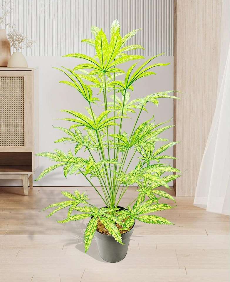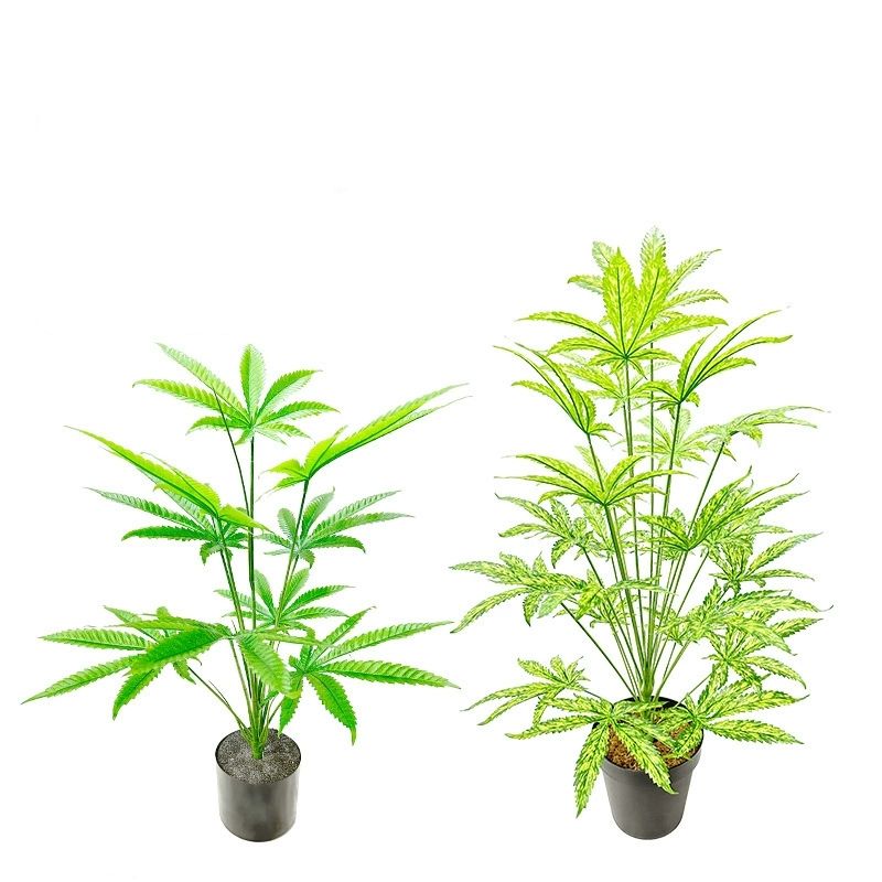 Hot Selling Artificial Hemp Leaves Bonsai Faux Maple Leaves Potted Plant for the Livingroom Office Staircase Balcony Decoration