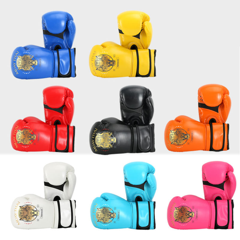 Vente chaude 10oz 14oz Gants de kickboxing Logo personnalisé Gants d'entraînement de boxe imprimés en cuir PU Formation d'affaires