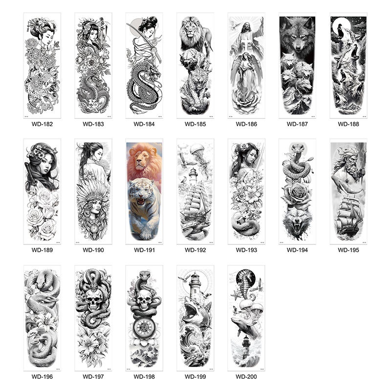 IN Stock European American Drama Full Arm Temporary Tattoo Sticker Waterproof Black and White Dazzling Color