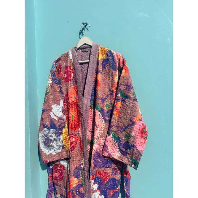 Peignoir Kantha en coton indien pour femmes Robe Kimono à fleurs avec fermeture à cordon de serrage à séchage rapide Fourniture ODM