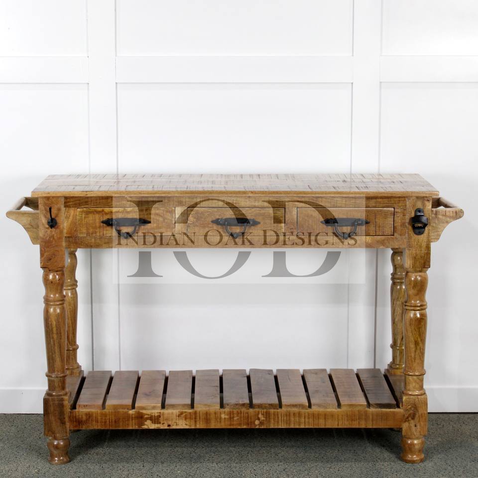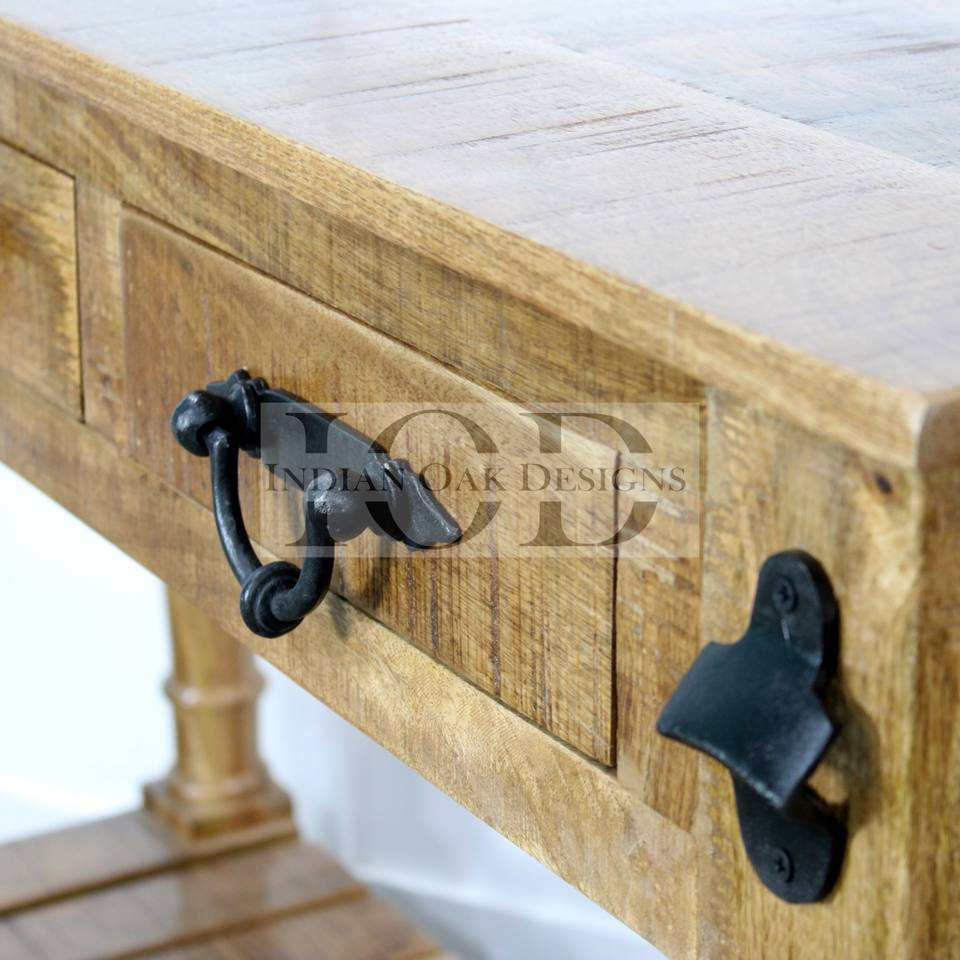 Table console industrielle en bois de manguier sculpté avec tiroirs Table d'entrée finie pour chambre à coucher salon application de stockage