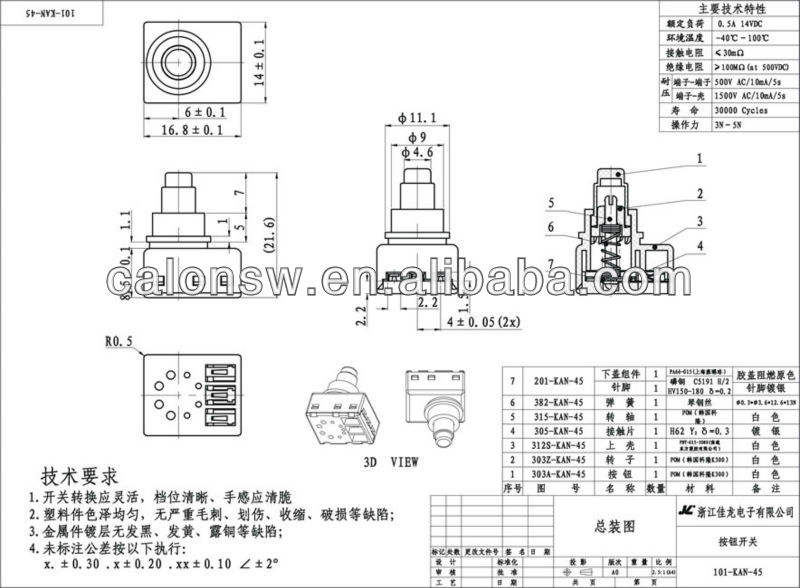 Durée de vie électrique:100 000 fois au-dessus