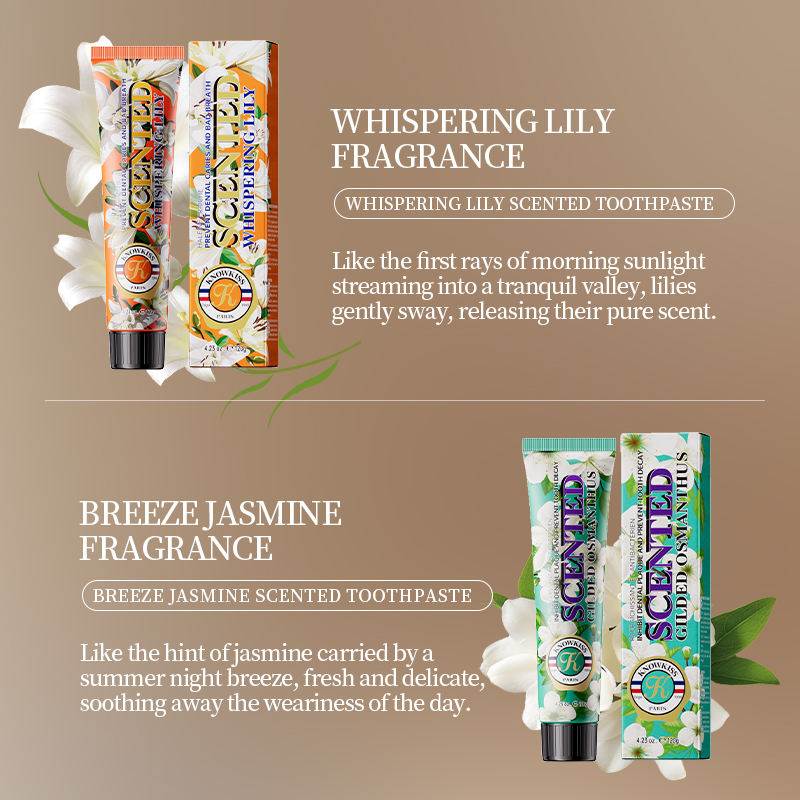 Dentifrice blanchissant naturel KnowKiss 120g, marque privée, parfum jasmin, fraîcheur buccale, lys, osmanthus, rose de rêve