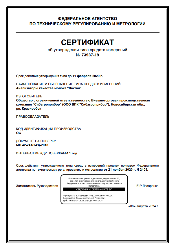 Laktan model 600 ULTRA (standard version)Numéro de Type