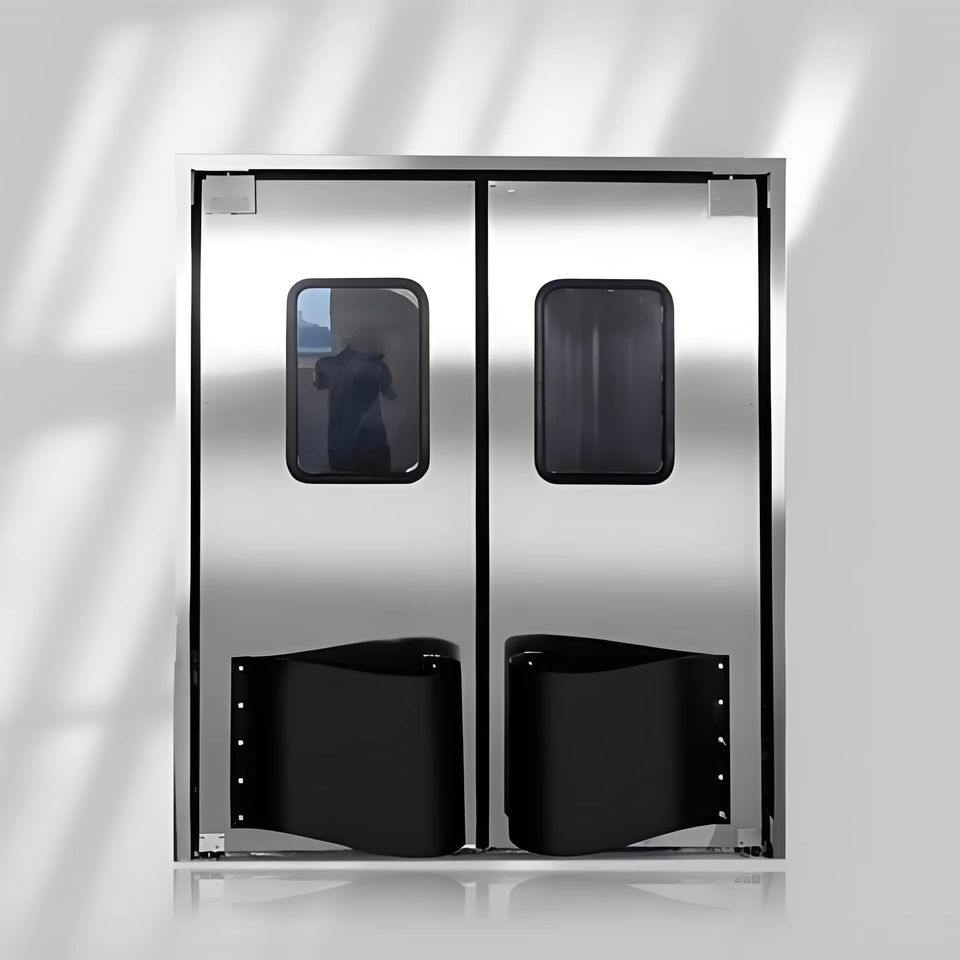 Latest Hot Double Swing Forklift Door Free Impact Workshop Traffic Door with Stiffeners Stainless Steel Finished Surface