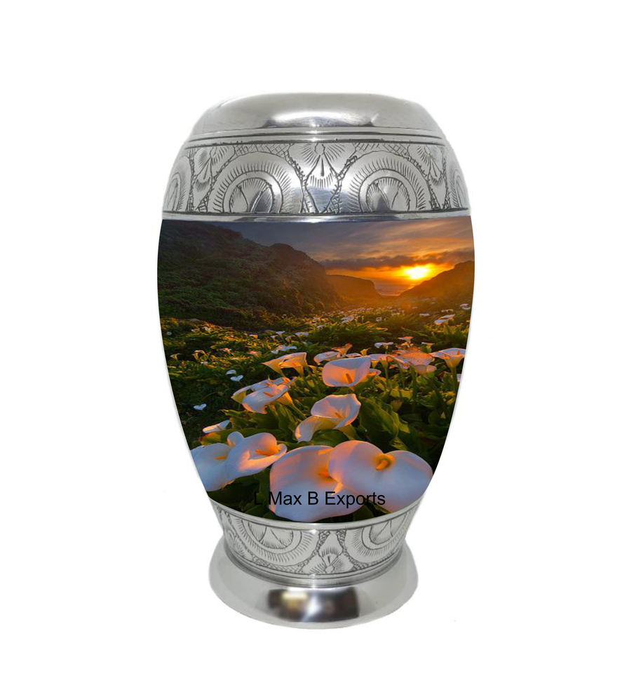 Nom du produit:Urnes funéraires Cremation Lavande Belle Prairie de Fleurs Lever de Soleil