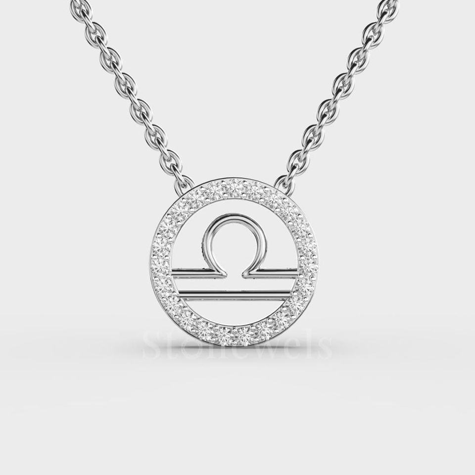 Model Number:Libra Zodiac Diamond Necklace-Silver