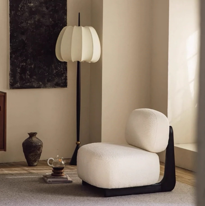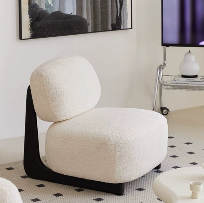 Longstar New Design INS Modern Luxury Cream Beanbag Chair Wood Structure Sofa Chair Lazy Single Velvet Sofa for Living Room
