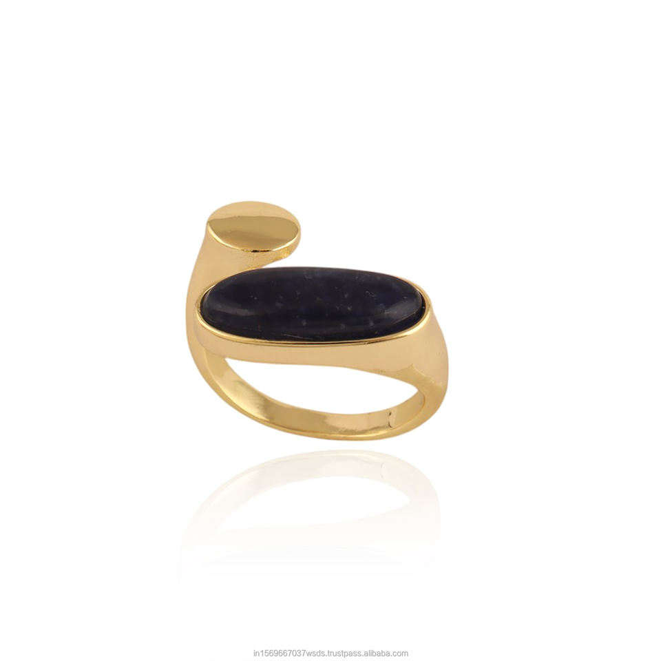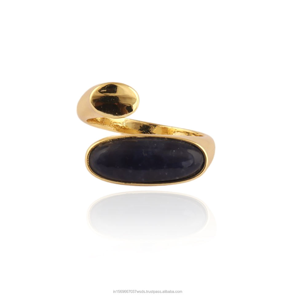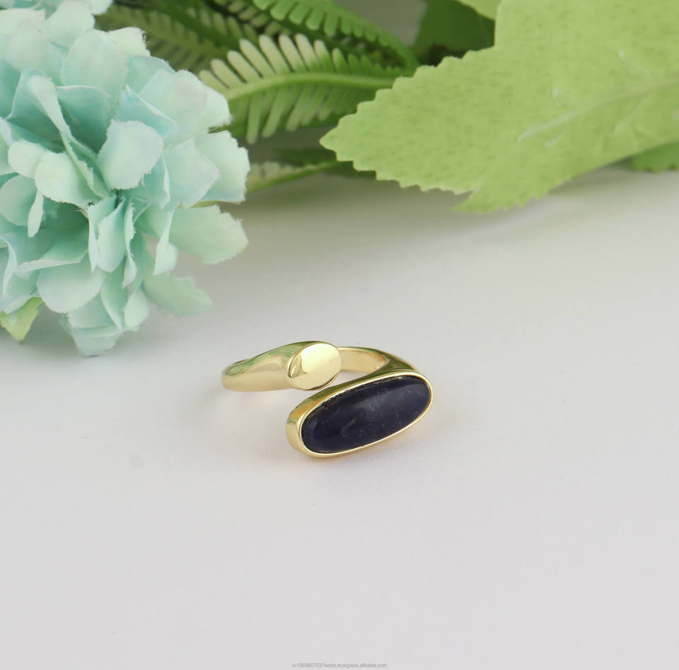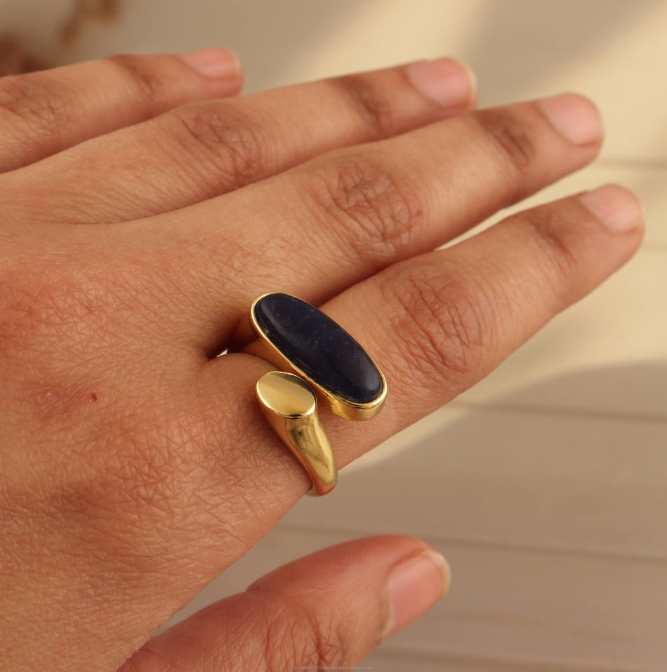 Bague ouverte en quartz noir de luxe Bagues ouvertes à la mode Bijoux faits à la main en pierres précieuses