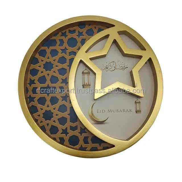 Décorations de table de luxe pour le Ramadan Eid Mubarak Dessert du Ramadan Forme de la lune Plateaux de service en bois blanc doré par rfcrafts