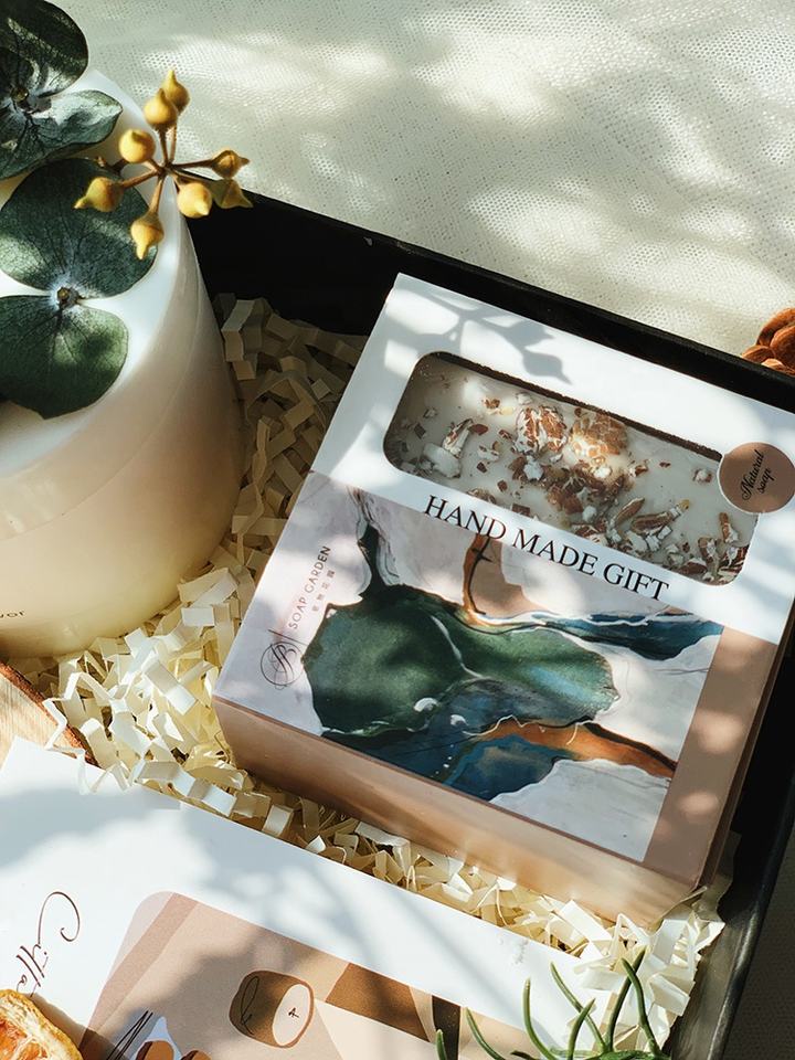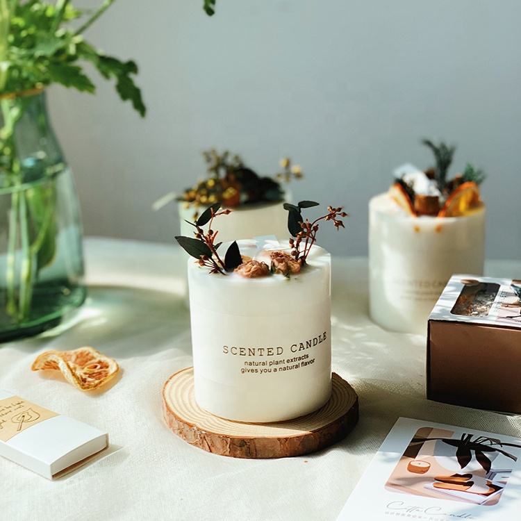 Luxury Romantic Natural Dried Flower Soy Candle Scented Gift Set with Handmade Soap and Wooden Candle Holders