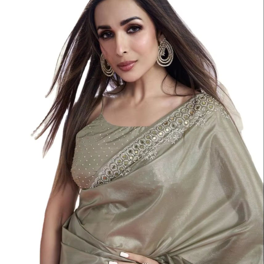 Malaika Arora Acteurs Célèbres Portent Nouvelle Tendance Cordage Séquence Travail Fête Porter À La Mode Saree Avec Fantaisie Blouse Pièce