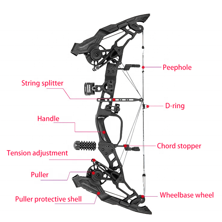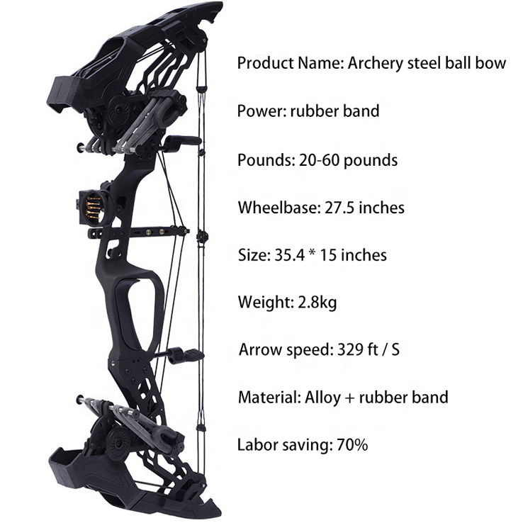 Fabricant en gros, poulie composite à double usage, arc et flèche, arc à bille en acier extérieur, caoutchouc anti-predator Raptor