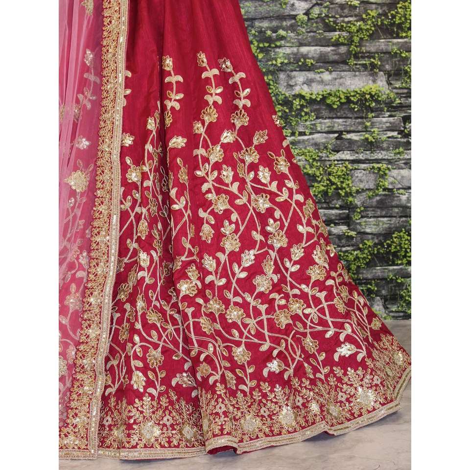 Marron Applique Broderie travail Banglory Soie Lehenga Choli