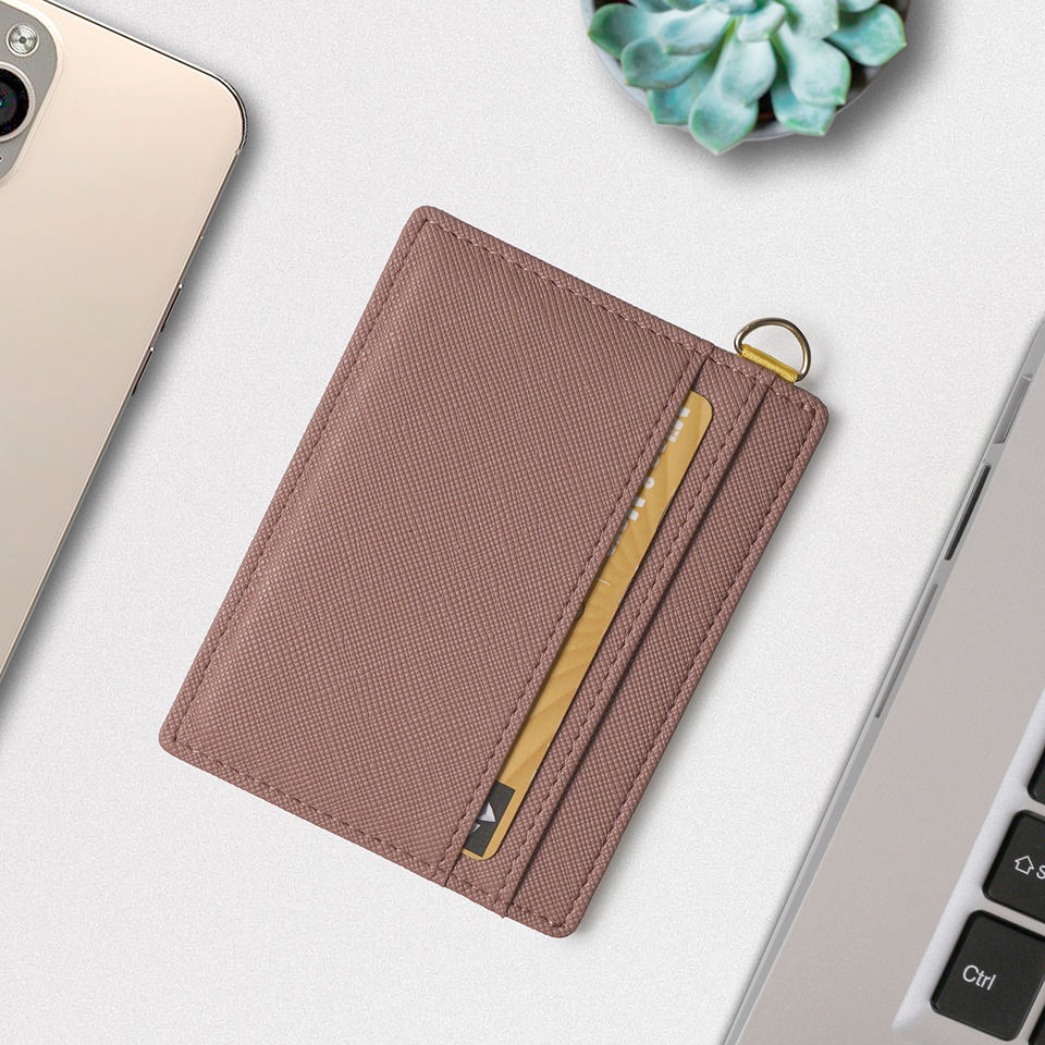 Mauve Color Import Duty Free Products Front Pocket PU Card Holder Wallet Stamp Your LOGO Custom Credit Card Holder With D Ring