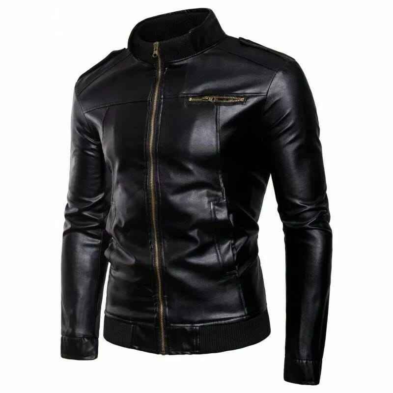 Veste homme coupe ajustée en faux cuir style rue pour extérieur moto col montant toile tissu à vendre