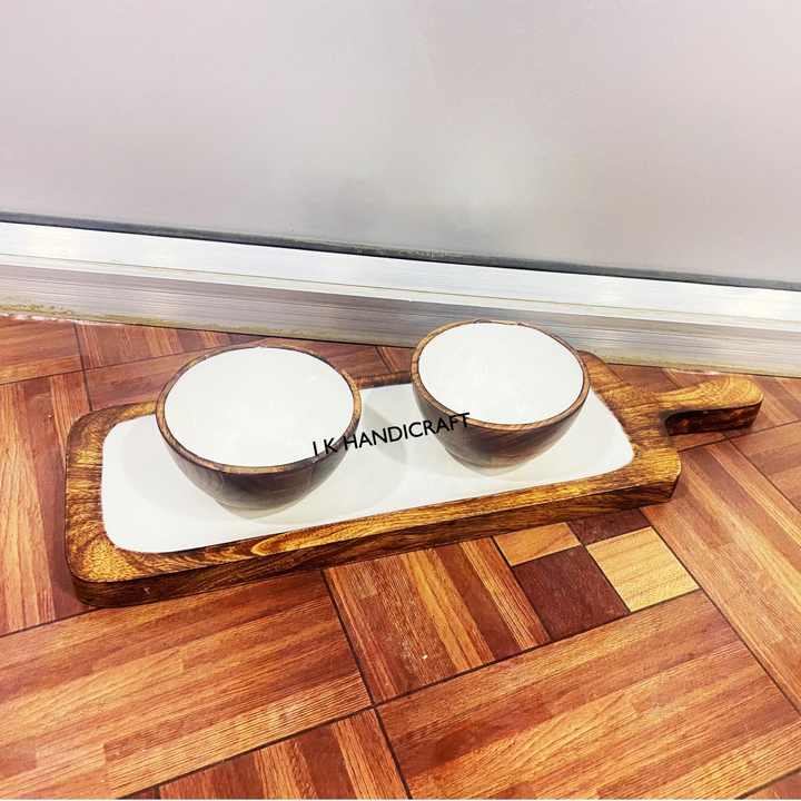 Personnalisé Moderne Élégant Bois Blanc 3 Bols De Service Plateau De Bonbons Partie Écologique À La Main Durable Diva Collections Inde