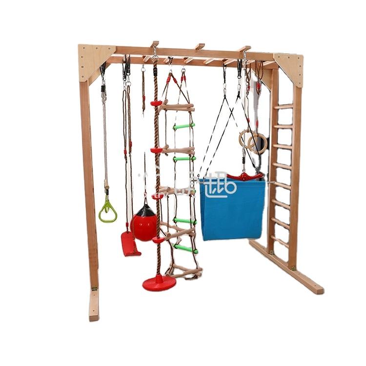 Moetry Kids Indoor Monkey Bar Climbing Frame Wooden Jungle Gym Sensory Room Equipment for Kindergarten Pediatric Therapy