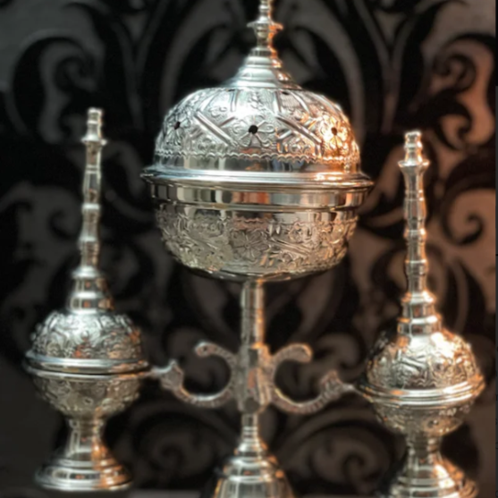 Brûleur d'encens marocain avec deux vaporisateurs argentés suspendus, décoration marocaine artisanale, vaporisateur traditionnel, OEM disponible, nouveau, 10 pièces