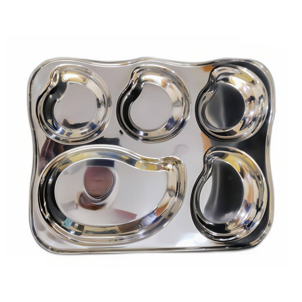 Plateau de repas en acier inoxydable le plus exigeant 2025 Plateaux à compartiments multiples durables et élégants pour le service des aliments organisés