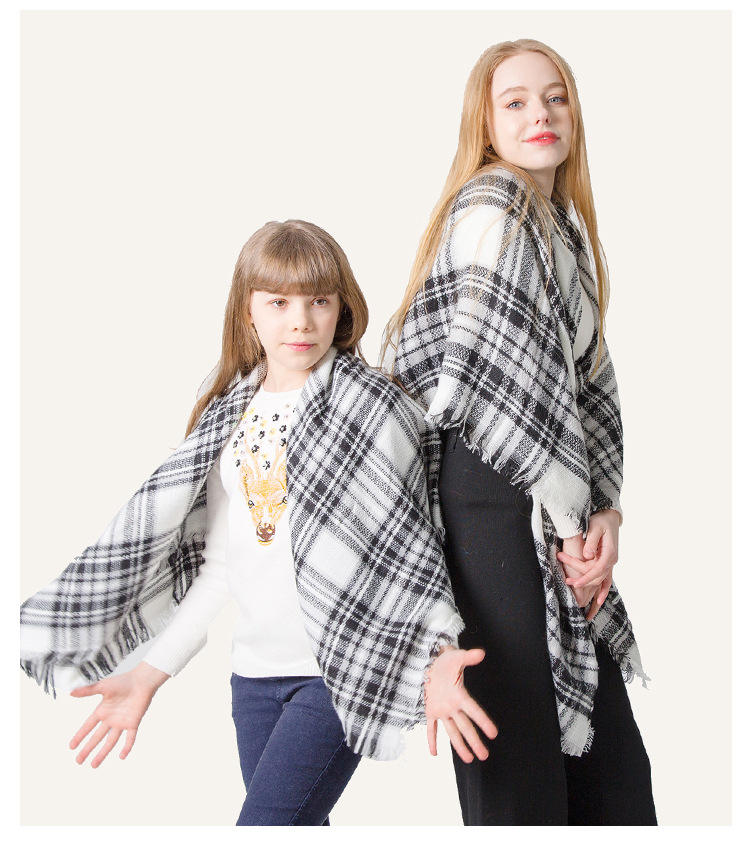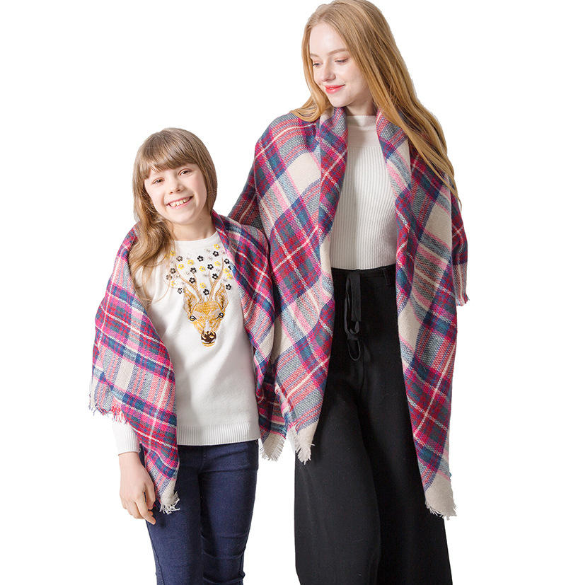 Mother Daughter Matching Mommy and Me Blanket Scarfs Set Square Parent-child Winter Women Kids Plaid Tartan Scarf Wrap Shawl