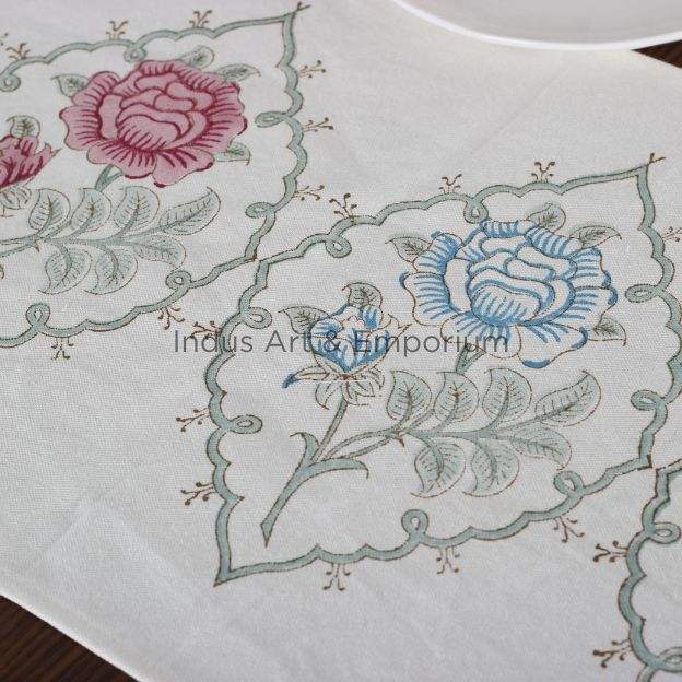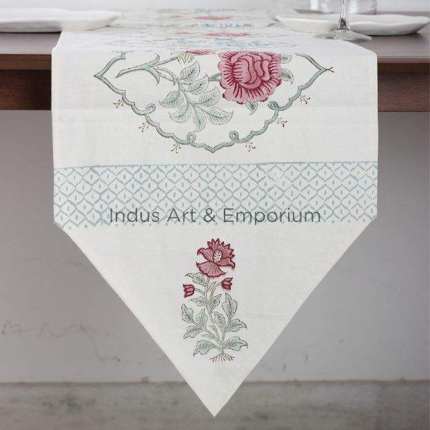 Chemin de table imprimé moghol en toile de coton indien imprimé bloc à la main
