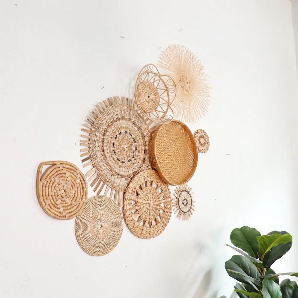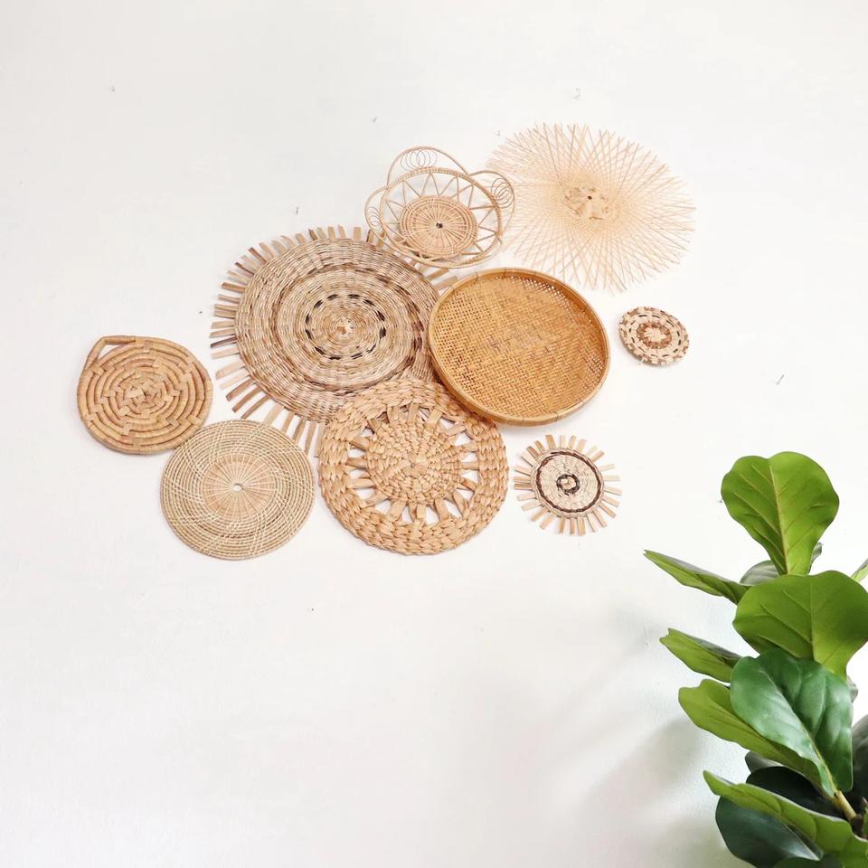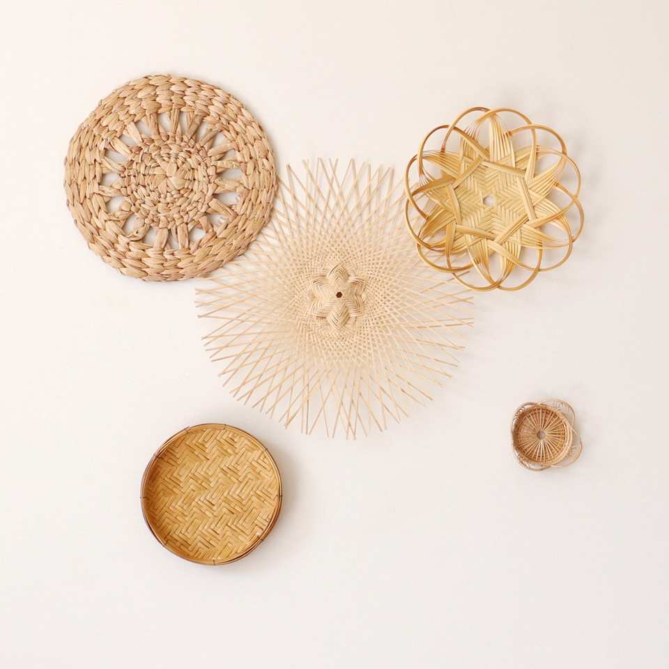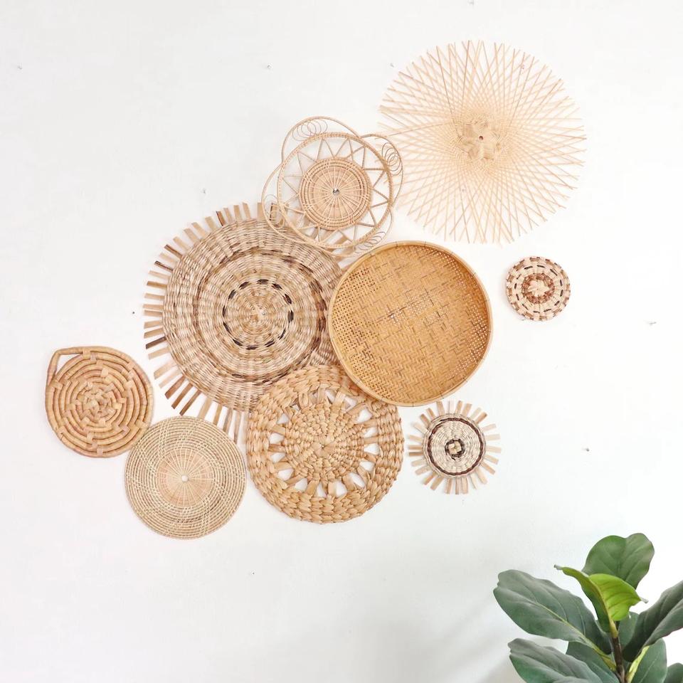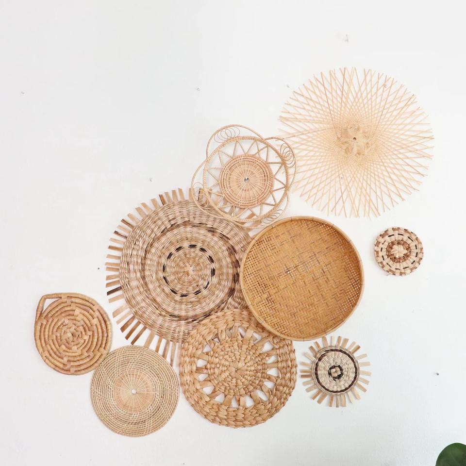 Product Name:Rattan and Bamboo Plates Baskets Wall Hanging Decor for Home